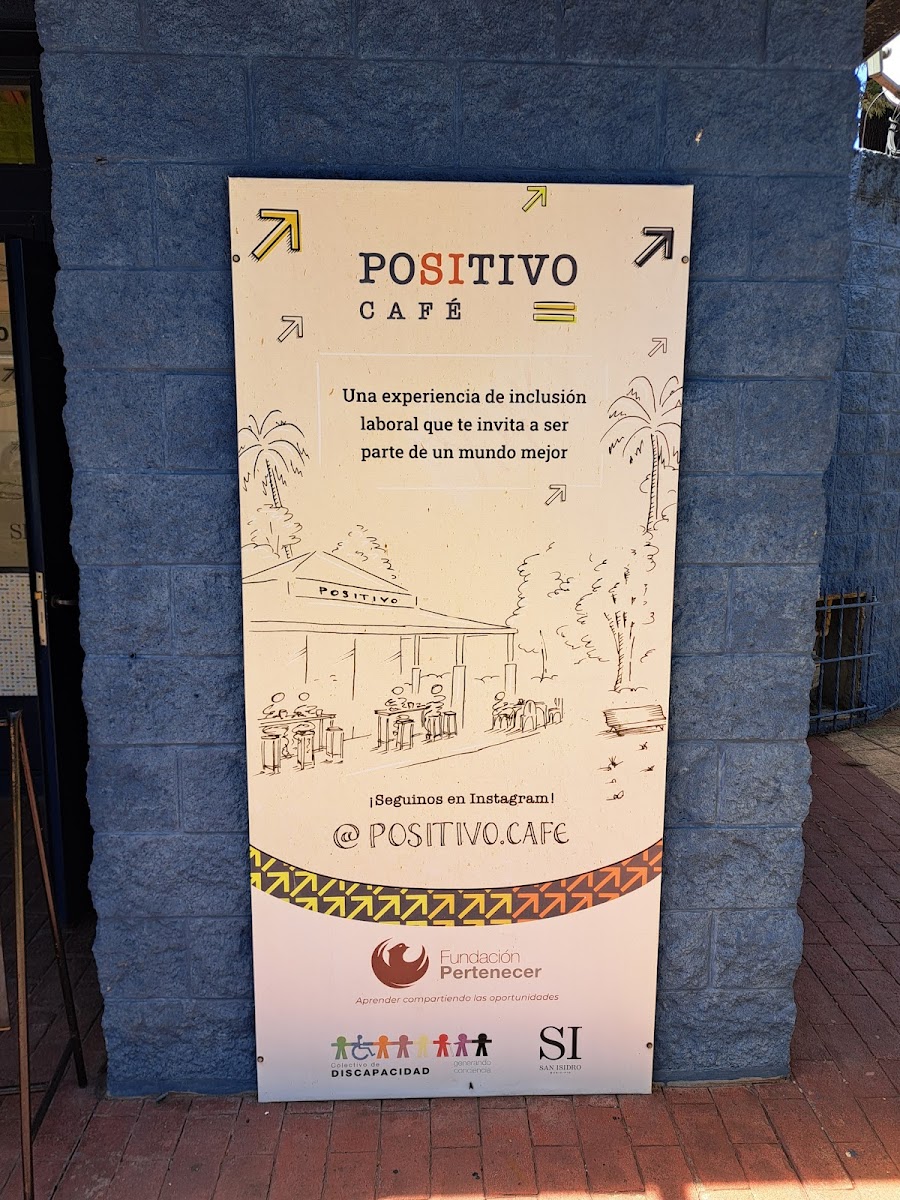 Después de mucho tiempo pude venir un día de semana, porque lamentablemente los domingos cierran. No sabía de qué se trataba "Positivo", hasta que escaneé el QR y entré al Instagram. Fue una grata sorpresa conocer este proyecto de la Fundación Pertenecer, donde apuestan a la inclusión laboral para personas con discapacidad. No solo desde el vamos suena digno de visitar, sino que el café que preparan es una maravilla. No hace falta agregarle nada! Además, las medialunas son aceptables, se notan caseritas.